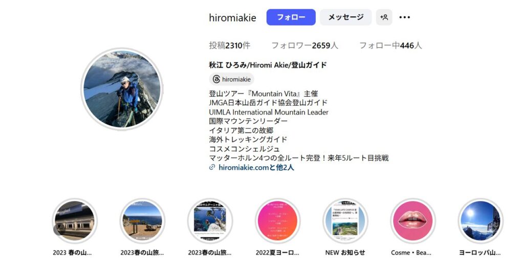 秋江ひろみさんは、国内だけでなくヨーロッパでも活躍する登山ガイドです。